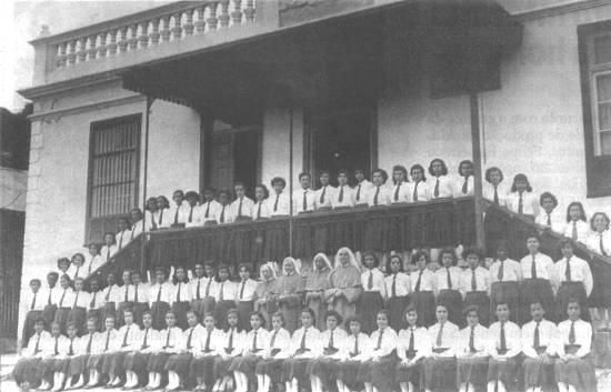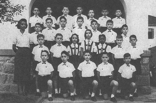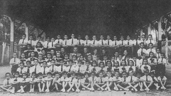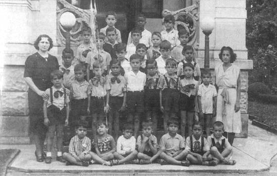 Em 1942, alunos do curso primário da Escola Portuguesa, localizada na Rua 7 de