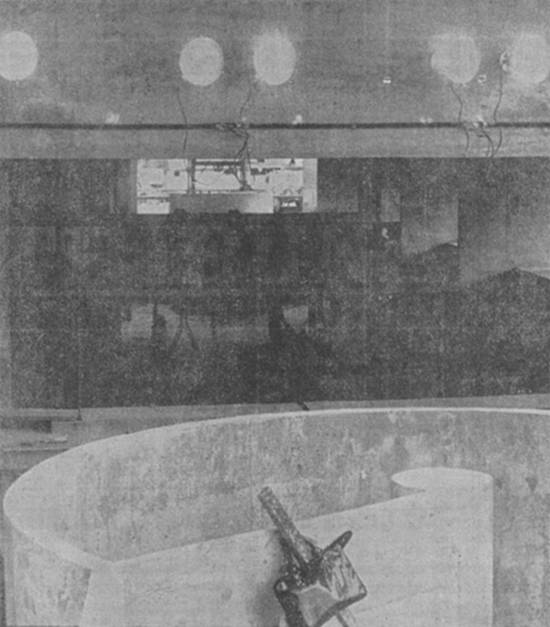 composição de concreto no centro, onde foram adaptados bicos de gás, pias e armários para os produtos químicos. Os outros salões, destinados à sala