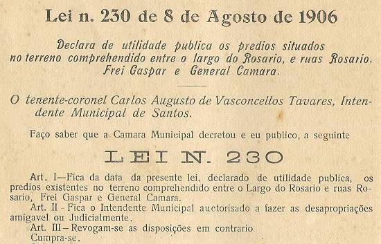 Secretaria da Câmara Municipal de Santos, em 8 de agosto de 1906. – O presidente da Câmara,