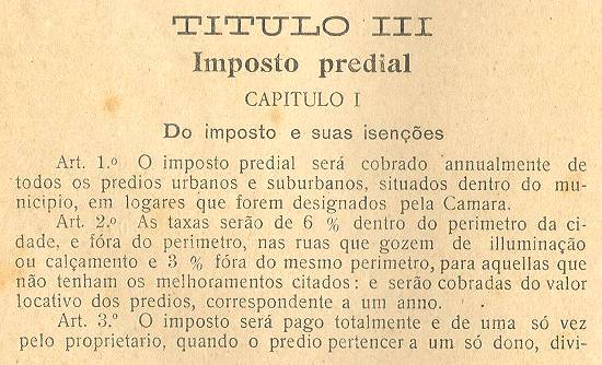 Art. 2º - As taxas serão de 6% dentro do perímetro da cidade, e fora do perímetro, nas ruas que
