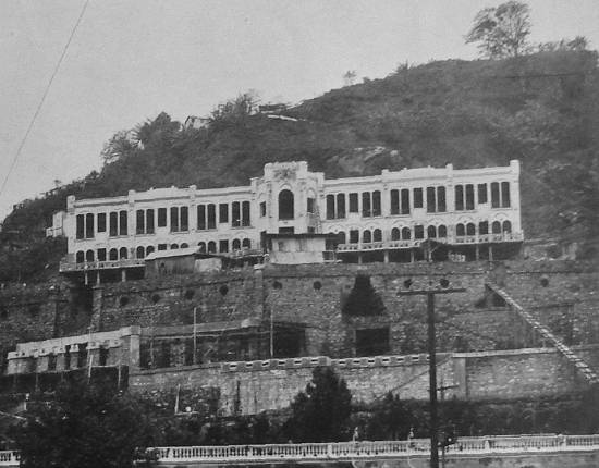 prédio visto na elevação do morro é o Pavilhão de Isolamento dr. Sotter de Araújo, que funcionou durante muitos anos junto à velha Santa Casa de