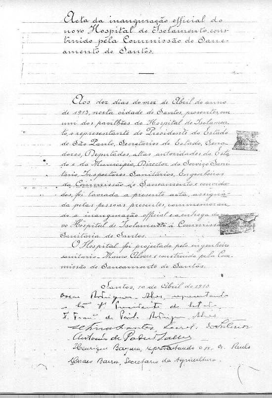 embrião do Hospital Guilherme Álvaro, hoje mantido pelo governo do Estado e instalado em frondosa chácara na Rua Dr. Oswaldo Cruz, nº 197.