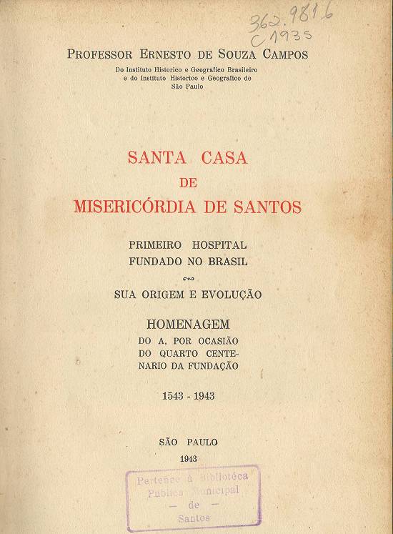 professor Ernesto de Souza Campos, Santa Casa de Misericórdia de Santos - Primeiro hospital fundado no Brasil, com sua origem e evolução - 1543-1943,