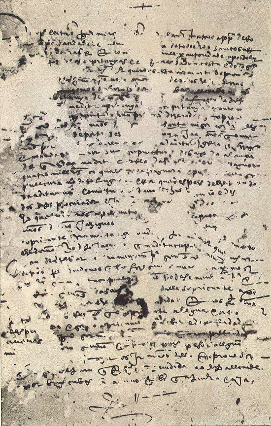 Cópia fotográfica de uma escritura existente no arquivo do Convento do Carmo em Santos. A escritura está reproduzida e traduzida no texto, do capítulo referente à primeira localização do hospital de Braz Cubas