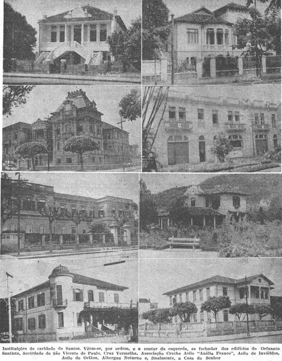 Instituições de caridade de Santos. Vêem-se, por ordem, e a contar da esquerda, as
