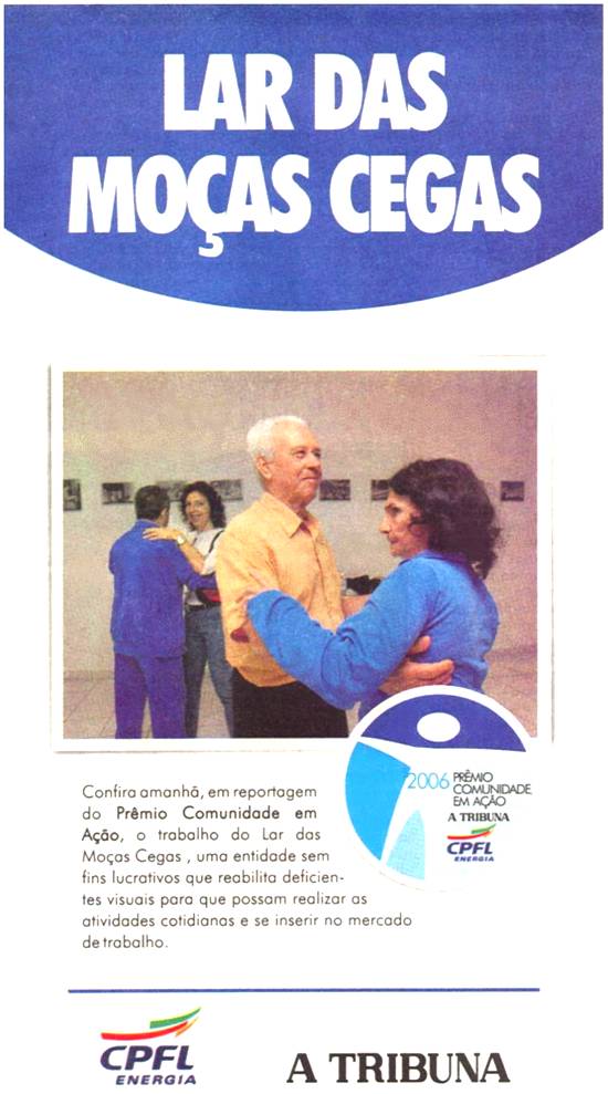 pelo Lar das Moças Cegas, em Santos. Mundo que, um dia, muitos enxergavam, mas hoje têm a oportunidade de conhecê-lo com outros sentidos e de