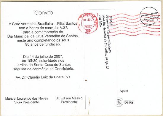 A estrutura da Cruz Vermelha no Estado de São Paulo conta com uma filial na Capital e mais quatro municipais, sendo duas delas na Baixada Santista: Santos, São Vicente, Jacareí e São José dos Campos.