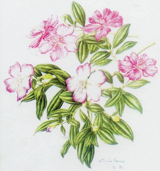 Manacá-da-serra (Tibouchina pulchra Cogn.), em ilustração de Maria Cecília