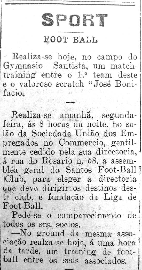 Santos, não! Não havia futebol, nem jamais disso se falara. Daí a sua lembrança de ser adquirida uma bola. Fez um rateio entre os seus amigos,