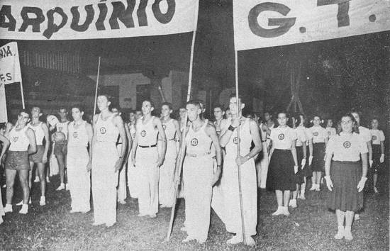 o desfile da 1ª Olimpíada Colegial de Educação Física, que se revestiu de grande brilhantismo. O júri para julgamento dos concorrentes decidiu