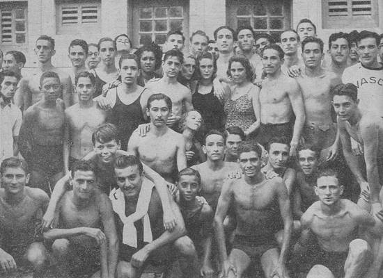 demonstração. Seus triunfos asseguram-lhe um lugar de destaque na natação de S. Paulo, de que é um dos mais expressivos valores. O clichê mostra-nos