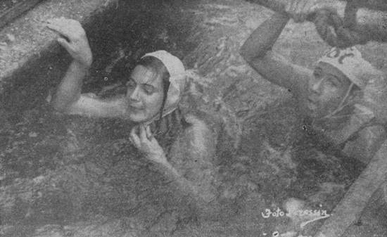 apresentava de forma pouco convidativa para tão formidável demonstração. Não obstante, os nadadores santistas proporcionaram a uma assistência de