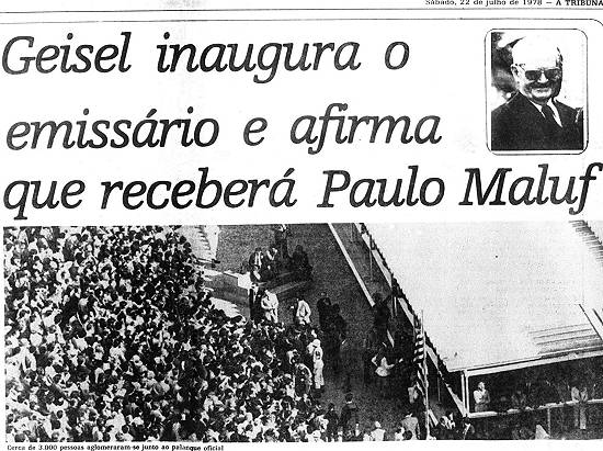 Geisel inaugura o emissário e afirma que receberá Paulo Maluf