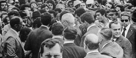 quase 3.000 pessoas que se aglomeravam junto ao palanque, e a seguir falou o ministro Rangel Reis. Fugindo à programação, o presidente Ernesto