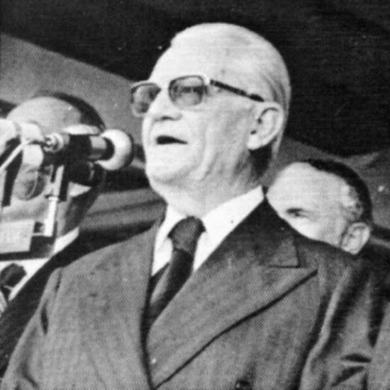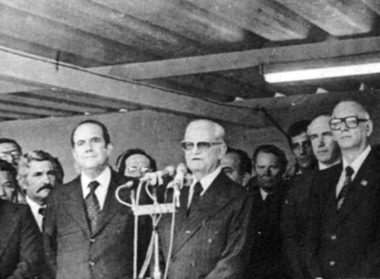 onde inaugurou o novo laminador da Cosipa e deu início ao cravamento das primeiras estacas da Aciaria II, o presidente Ernesto Geisel, juntamente