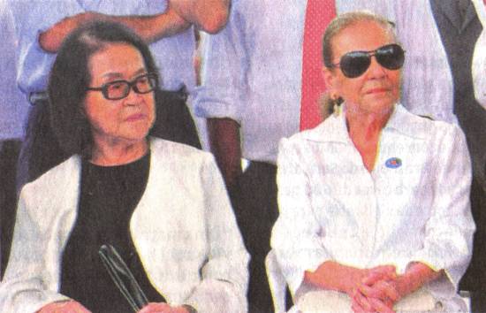 A artista plástica Tomie Ohtake e senhora Regina Santini