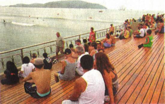 junto ao quebra-mar eram os mais disputados. A escultura da artista plástica Tomie Ohtake também fez o maior sucesso e muita gente tirava fotos em