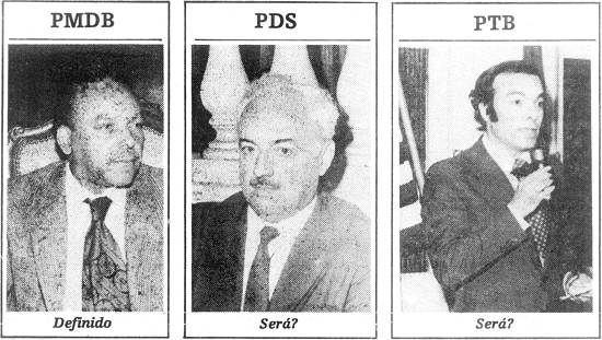 Nem mesmo o lançamento das candidaturas de Joaquim Coutinho Marques (PDS) e Rony Dutra de Oliveira (PTB) podem ser consideradas confiáveis. A primeira nasceu claramente de uma cisão existente no partido situacionista, onde a bancada junto à Câmara Municipal praticamente fechou suas portas ao prefeito Paulo Gomes Barbosa, seriamente desgastado politicamente, e sem maiores possibilidades de se eleger. Sua opção foi definir-se pela Assembléia Legislativa, outra meta bastante difícil de ser atingida.