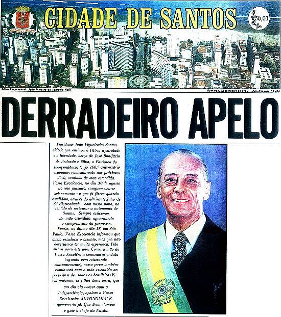que já fizera quando candidato, através do almirante Júlio de Sá Bierrenbach - com nosso povo, no sentido de restaurar a autonomia de Santos. Sempre