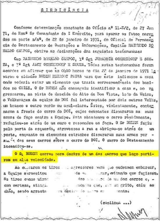 As informações enterram de vez a falsa versão divulgada pelo Governo da época. "O discurso sustentado era de que o Paiva foi levado, uma noite, para fazer o reconhecimento de uma casa em um carro dirigido por um capitão, que tinha ao seu lado um