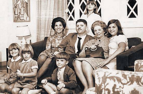 Ex-deputado santista Rubens Paiva e a esposa, Eunice (à esq.), tiveram cinco filhos, entre eles Maria Eliana Facciola Paiva (em pé), que foi presa aos 15 anos, juntamente com a mãe