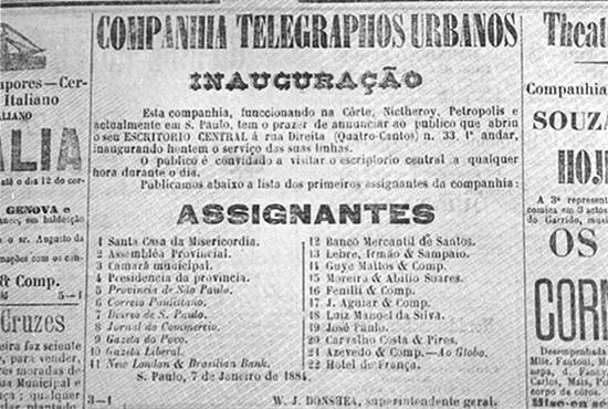 Imagem: anúncio da Companhia Telégraphos Urbanos em A Província de São Paulo. Acervo do Arquivo do Estado