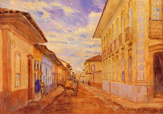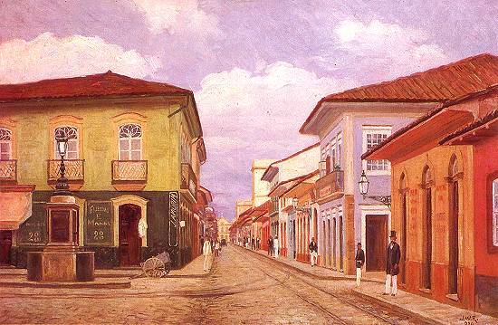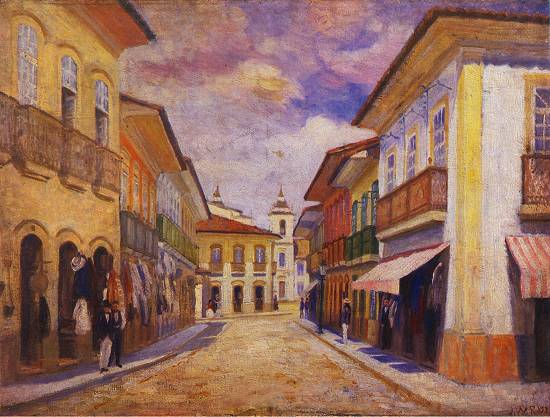 JOSÉ WASTH RODRIGUES - Rua do Rosário (1858), 1919, óleo 61,5x41,5 cm, acervo do Museu Paulista