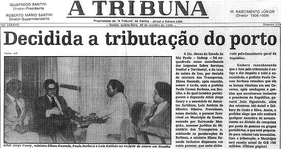 em 30 de outubro de 1980, tinha um significado muito especial para os santistas: "Decidida a tributação do porto".