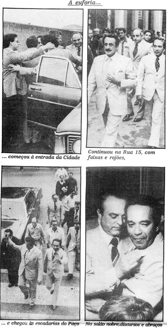 uma caminhada, sob aplausos, rojões e confetes, até o Paço. Lá, o salão nobre já estava lotado para a solenidade em que o prefeito anunciaria