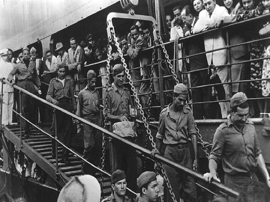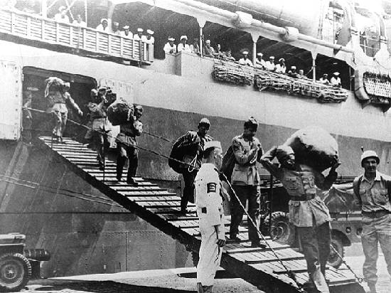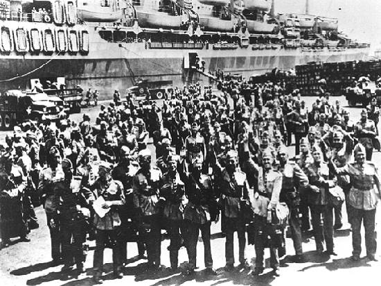 Desembarque do 1º Escalão da FEB no porto de Nápoles, em 16 de julho de 1944: