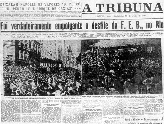 Imagem: reprodução da primeira página do jornal santista A Tribuna, em 20/7/1945