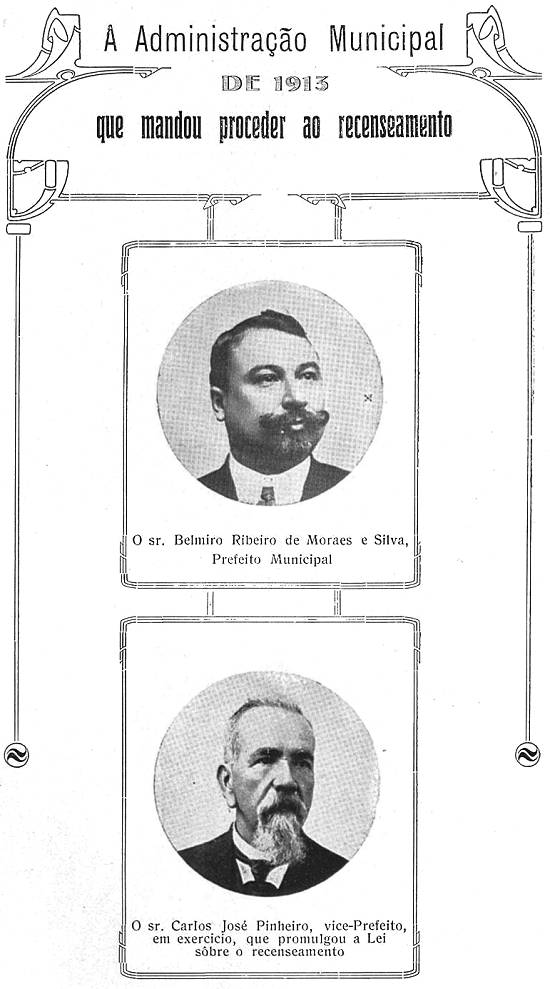 "Tendo em vista os estados da população, demonstrados pelos quadros censitários que o sr. diretor da Comissão de Recenseamento submeteu à aprovação desta Prefeitura, resolvo considerar oficialmente autênticos, a partir desta data, e para que produzam os seus efeitos legais, os resultados do recenseamento de 31 de dezembro de 1913, dando ao Município de Santos a população de 88.967 (oitenta e oito mil, novecentos e sessenta e sete) almas.