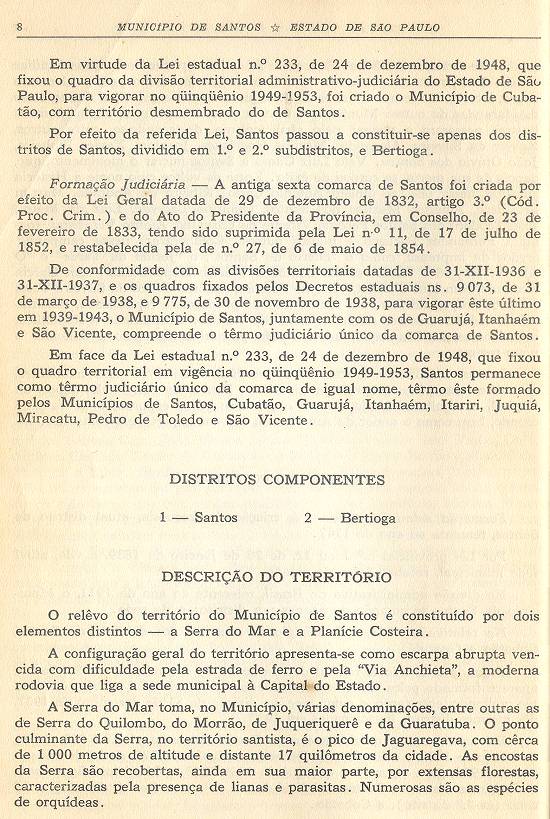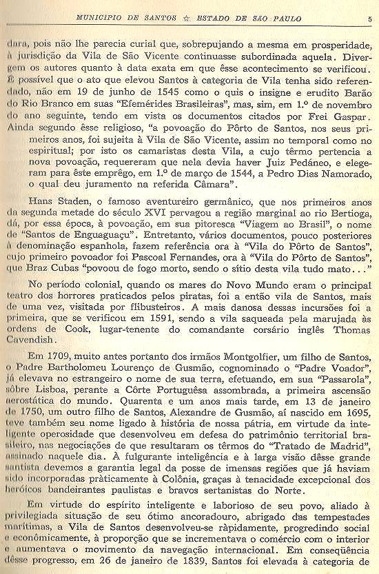 Estatística do Município de Santos - Estado de São Paulo, com 78 páginas e uma planta cartográfica regional, de que resta um exemplar
