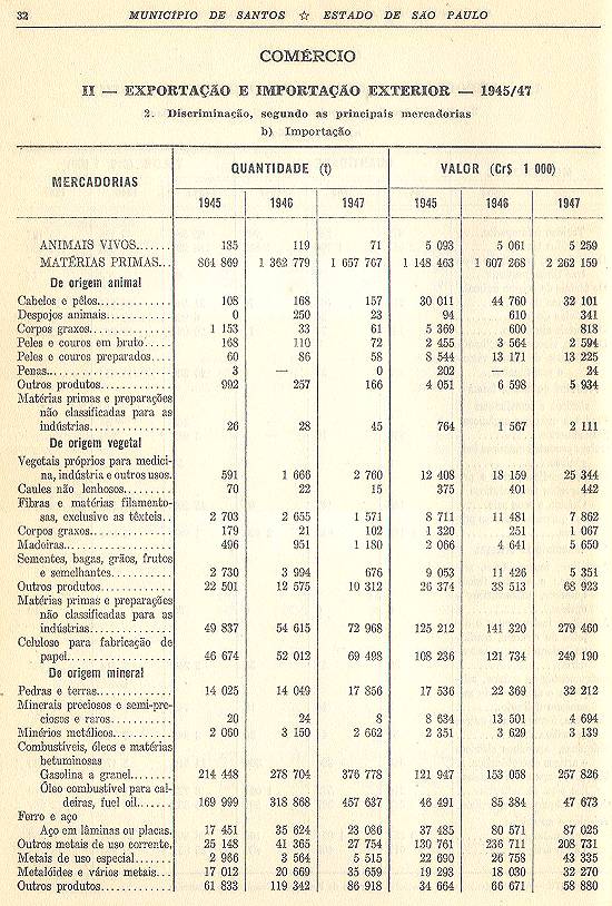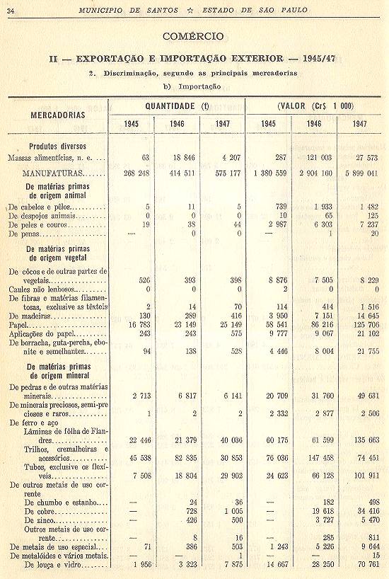 Estatística do Município de Santos - Estado de São Paulo, com 78 páginas e uma planta cartográfica regional, de que resta um exemplar