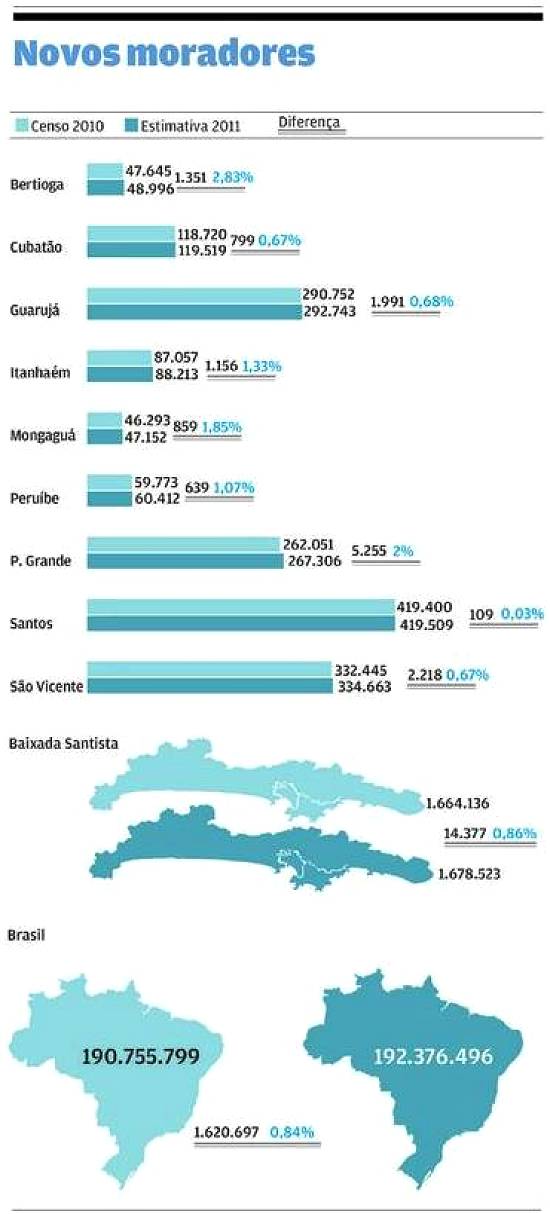 Estatística (IBGE), baseada no Censo 2010, aponta que, neste ano, Santos registrou uma taxa de crescimento populacional abaixo de sua média anual.