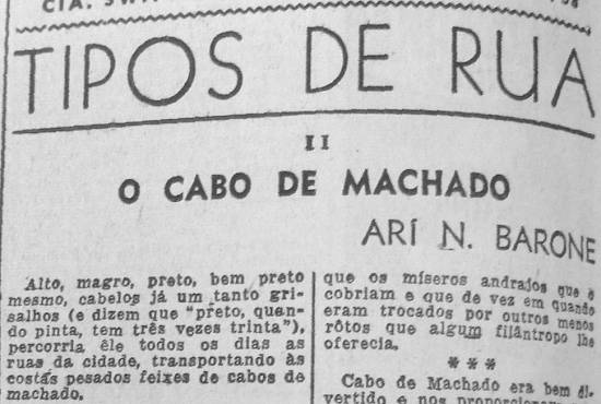 Alto, magro, preto, bem preto mesmo, cabelos já um tanto grisalhos (e dizem que "preto, quando pinta, tem três vezes trinta"), percorria ele todos os dias as ruas da cidade, transportando às costas pesados feixes de cabos de machado.