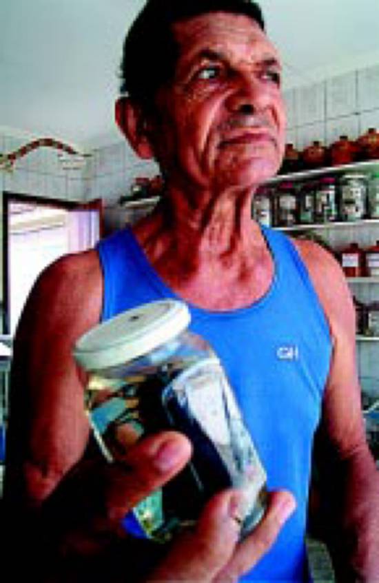 Logo em seguida, João confessa que o composto, vendido em cápsulas (60, por R$ 20,00), é primeiramente indicado no combate à anemia. "Mas tesão não faz mal a ninguém, ?", insiste, enquanto tira da manga outro composto, com 12 ingredientes (entre eles casca de ipê-roxo, barba-timão e oxi do Amazonas), que ajuda as mulheres a engravidar.