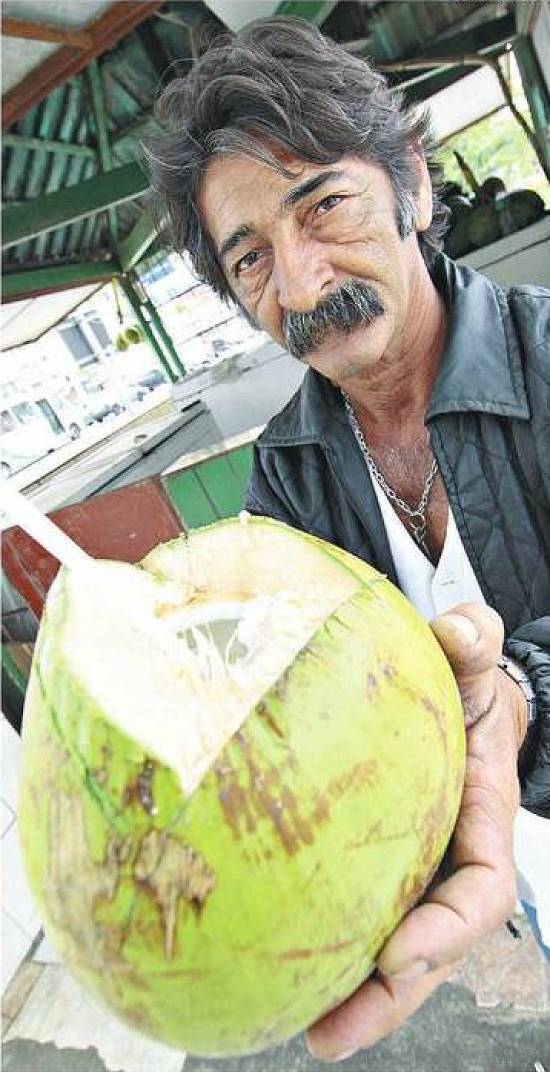sósia mais que perfeito do cantor também cearense. De facão em punho, com habilidade conquistada pela necessidade de sobreviver, ele abriu o coco