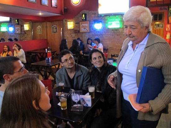 Daisy Ferreira, de 77 anos, já é figura conhecida entre os jovens e garçons.