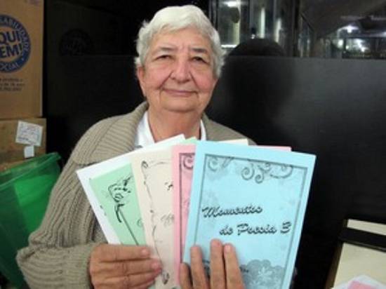 Uma senhora de 77 anos de idade trabalha há cerca de 10 anos espalhando cultura para jovens em Santos, no litoral de São Paulo. Ela não é professora, porém, adquiriu o respeito deles divulgando as centenas de poesias que já escreveu no decorrer da vida. A distribuição é feita em bares, restaurantes e faculdades, onde ela encontra seu público-alvo favorito: os jovens.