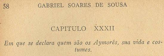 Descendem estes aimorés de outros gentios a que chamam tapuias, dos quais nos tempos de atrás se ausentaram certos casais, e foram-se para umas