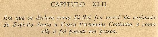 No povoar desta capitania gastou Vasco Fernandes Coutinho muitos mil cruzados, que adquiriu na Índia, e todo o patrimônio que tinha em Portugal,