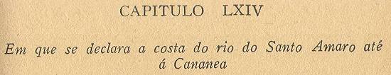 capitania, da qual ao Rio da Cananéia são vinte e cinco léguas ou trinta, antes da qual se acaba a capitania de Santo Amaro, e corre-se esta costa