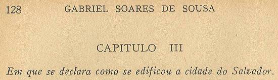 Como Tomé de Sousa acabou de desembarcar a gente da armada e a assentou na Vila Velha, mandou descobrir a baía, e que lhe buscassem mais para dentro alguma abrigada melhor que a em que estava a armada para a tirarem daquele porto da Vila Velha, onde não estava segura, por ser muito desabrigada; e por se achar logo o porto e ancoradouro, que agora está defronte da cidade, mandou passar a frota para lá, por ser muito limpo e abrigado; e como teve a armada segura, mandou descobrir a terra bem, e achou que defronte do mesmo porto era melhor sítio que por ali havia para edificar a cidade, e por respeito do porto assentou que não convinha fortificar-se no porto de Vila Velha, por defronte desse porto estar uma grande fonte, bem à borda da água que servia para aguada dos navios e serviço da cidade, o que pareceu bem a todas as pessoas do conselho que nisso assinaram.