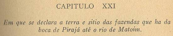 a recuar para trás até a boca do Rio de Matoim, tudo povoado de alegres fazendas. Do porto de Paripe ao Rio Matoim são duas léguas, e de Matoim à