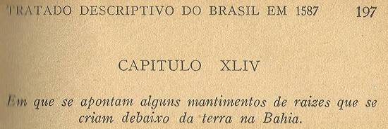 Como fica dito da mandioca o que em breve se pode dizer dela, convém que declaremos daqui por diante outros mantimentos que se dão na Bahia
