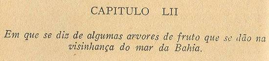 Na vizinhança do mar da Bahia se dão umas árvores nas campinas e terras fracas, que se chamam mangabeiras, que são do tamanho de pessegueiros. Têm