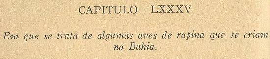 Em que se trata de algumas aves de rapina que se criam na Bahia.