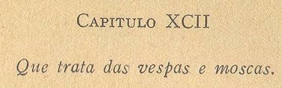 E porque as moscas se não queixem, convém que digamos de sua pouca virtude; e comecemos nas que se chamam mutuca, que são as moscas gerais