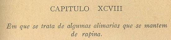 Em que se trata de algumas alimárias que se mantêm de rapina.